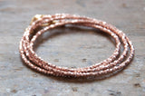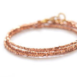 This essential triple wrap bracelet is made with the tiniest faceted 24k rose gold vermeil beads. These beads are very difficult to make because of their tiny size but the result is a fireworks of sparkle!