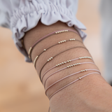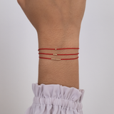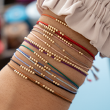 A modern minimalistic bracelet personalized by you. Choose how many beads you would like us to place on your bracelet and the color of your silk cord. The beads can symbolize a lucky number, family members, or simply because they look great on the silk cord.