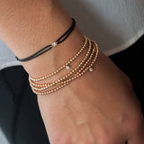 A super easy bracelet to wear and goes with any outfit.  This beaded 14k solid gold bracelet is adorned with a 0.05ctw diamond charm.  Great stacking bracelet but just as lovely on its own.