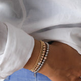 Easy to put on and take off. Our 5mm 14k Gold bracelets are accented with a diamond Ball Bead. Put a little sparkle on your arm.