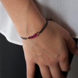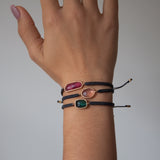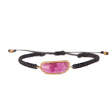 A beautiful 5.31 ctw pink tourmaline is handcrafted into a milgrain bezel and woven with a water-resistant nylon cord.