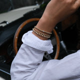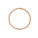 Enhance your everyday elegance with our Rose gold beaded bracelet, now featuring a standout white gold accent bead adorned with four delicate diamonds. Perfect as your go-to fine jewelry piece.