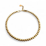 This bracelet is through and through made with 14k solid gold. The beads are Diamond bar cut and measure 3mm. The beads are strung on a 14k gold cable chain and mounted on a 14k gold lobster clasp. All our bracelets are hallmarked with 585 VFD ( 14k gold). This bracelet is perfect to keep on and will not tarnish in any way, a great everyday stacking bracelet.