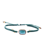 A hand selected Blue/Green Tourmaline is handcrafted into a milgrain bezel and macramed with 14k gold accent beads on a nylon cord. A throwback to the friendship bracelets we all loved as kids only this one is made with 14k gold!