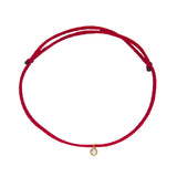 Our diamond charm bracelet features a solitaire white diamond either in 0.05ctw or in 0.10 ctw strung on a silk adjustable cord. Simple everyday minimalist jewelry.