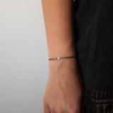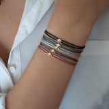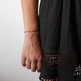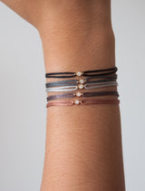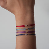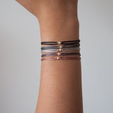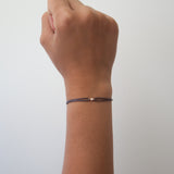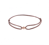 An effortless and classic bracelet featuring a 0.06 ctw white diamond solitaire bezeled in 14k gold. A perfect addition to your stack of friendship bracelets or simply worn on its own.