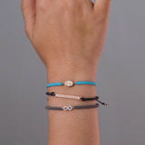 Our infinity friendship bracelets are made with 0.15 ctw of sparkly white diamonds set in 14k solid gold. They are handcrafted on a nylon cord for extra durability and safe to wear everyday. Adjustable.