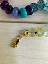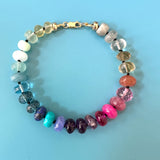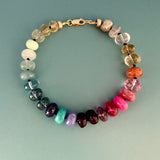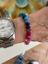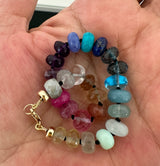 Our Rainbow gemstone bracelet is made with the best possible mix of faceted and smooth 7-8mm gemstones.
