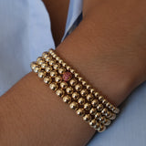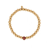 Our Ruby Ball Bracelet is handcrafted with 14k gold seamless beads and one pavé Ruby ball. This is the ultimate stacking bracelet combined with plain bead bracelets which you can also find in our shop. We just love how they stack up, but just as lovely on its own.