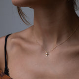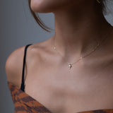 A dainty 14k gold mushroom charm set with three natural diamonds and strung on a 16 inch 14k gold chain. The diamond mushroom charm is dainty measuring 10mm with the loop and 7mm without the loop. We think it is the perfect size if you are looking for a dainty necklace.