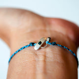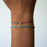 These beautiful charm bracelets are made to be treasured. A perfect white diamond is bezeled in 14k solid gold and then hand braided with a water resistant nylon cord. Your perfect summer bracelet. Wear then stacked, or alone. They make great afordable fine jewelry gifts. Your bracelet will be sent to you in our black Vivien Frank gift box.
