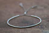 Taking our signature "Delicate" bracelet one step further with a full row of tiny 14k solid White gold beads stung on a twisted silk cord. You'll love wearing this ultra feminine minimalist bracelet on any occasion.