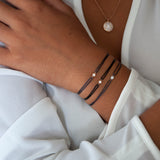 This delicate ultra femine diamond solitaire bracelet is handcrafted with a 2.2mm white diamond bezel set in precious 14k solid white gold and strung on a water resistant waxed cord. It is the ultimate understatement in fine jewelery!