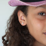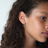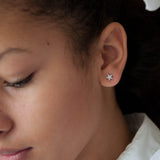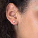Our Diamond Star Studs are set with tiny white diamonds in 18k solid gold. The stars are ever so lightly puffed for a beautiful arch.