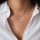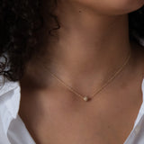 Our Ball Necklace features one pavé diamond or Ruby ball bead set in 14k gold. The bead hangs on a 15, 16 or 18 inch 14k gold cable chain.
