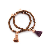 In time for summer.... these pretty rosewood beaded tassel bracelets are the perfect addtion to your stacking bracelets. Easy to put on and take off and sure to make your boho look perfect.