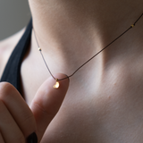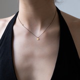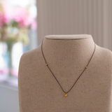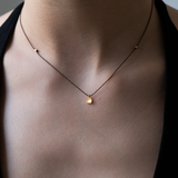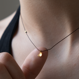 A whimsical solid 14k gold heart charm is strung on a silk cord and knotted with two 14k accent beads on either side. Great summer necklaces and gifts.