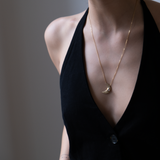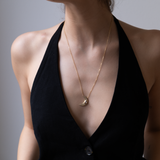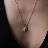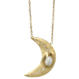 A mystical moon necklace is accented by a diamond highway on either side of the bezeled moonstone.