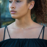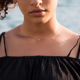 The diamond is hand bezeled with an organic look and feel. The perfect every day necklace you will love to keep on. It comes in three color options: Yellow Gold, Rose Gold and White Gold!