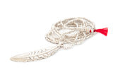 Embody your free spirit and show off your beautiful boho style with this faceted nugget feather necklace. The detailed feather charm is approximately two inches long and features a level of intricate detailing that’s only possible through skilled hand casting and carving. It hangs on a delicate 34-inch necklace strand of small pure silver faceted nuggets that is sealed with a small, fiery red tassel. Wear this unique feather necklace alone or layer it over smaller necklaces to elevate your style.