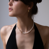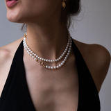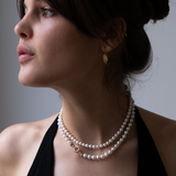 These all-natural freshwater pearls display a striking luster. Measuring approximately 7mm, they possess an AA quality rating, indicating slight imperfections. The standout feature of these pearls lies in their captivating luster. Handknotted with silk cord.