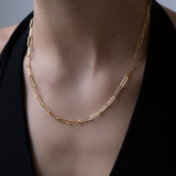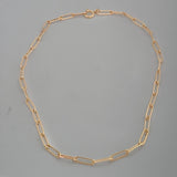 A classic stand-alone paper clip necklace. This chain is made with a high-quality 14k gold fill. Unlike plated chains, these will not fade or chip. A classic and chic addition to your wardrobe.