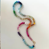 The Rainbow necklace is hand knotted with a dark amber silk cord and finished off with 14k solid gold clasp.