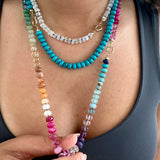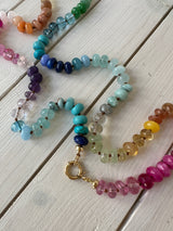 Long Rainbow candy gemstone necklace 14k gold OOAK