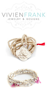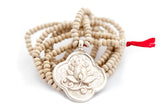 These beautiful tulsi beads are now coupled with a solid sterling silver four cloved lotus flower pendant and adorned with sterling silver flower beads.