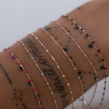 This delicate 9k solid gold cable chain features slender links adorned with vibrant enamel beads, making it the perfect necklace to elevate your summer style.