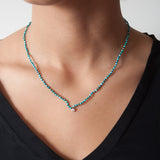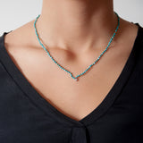 Our hand-knotted turquoise necklace is made with genuine faceted turquoise beads and features a lovely white diamond charm in either 0.05ctw or 0.10ctw. It looks great layered or on its own.