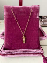 IX Worry Doll: named after the Mayan goddess, features a dress of rubies, sapphires and diamonds, and embodies good luck and good fortune.Her dress is adorned with 4 pink sapphires, 3 diamonds and 3 rubies