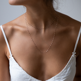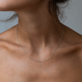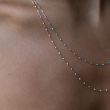 This delicate 9k solid gold cable chain features slender links adorned with vibrant enamel beads, making it the perfect necklace to elevate your summer style.