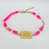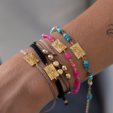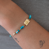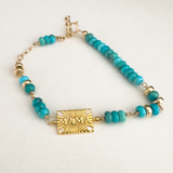 This wonderful OOAK bracelet is handcrafted with a 14k gold word connector encrusted with 4 small diamonds and wire wrapped with 14k gold beads and wire. Seen here with neon ethiopian opal smooth rondelles or with turquoise