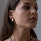 Unveiling the latest arrival in the Dala collection – the Dôme Milgrain Edge Grande Hoops. Meticulously crafted from solid gold and polished to perfection, this pair of hoops feature an elegant tapering round design, complemented by milgrain detailing along the edge. Also available to order in 14ct gold.