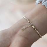 Our Bead bracelets are made with 14k solid gold through and through. Starting with a 14k gold rolo chain, clasp, beads, jump ring and finished off with an extension chain to ensure a perfect fit. Our bracelets are also hallmarked with 585 (14k solid gold) and our registered VFD Jewelers stamp.