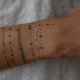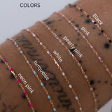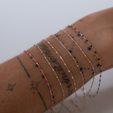 This delicate 9k solid gold cable chain features slender links adorned with vibrant enamel beads, making it the perfect bracelet to elevate your summer style.