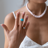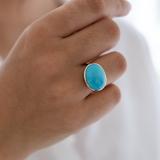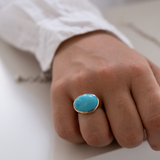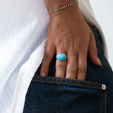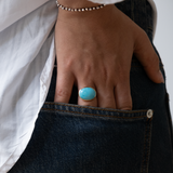 This 14k Solid Gold Arizona Turquoise Ring showcases a beautiful and unique Natural Arizona Turquoise stone, with a bezel finish. Handmade from start to finish, this ring exudes minimalistic elegance and boasts a stunning color that is sure to catch the eye. Experience the best of minimalistic jewelry with this one-of-a-kind piece.
