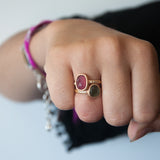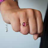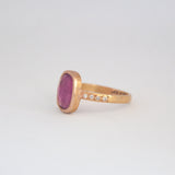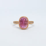 The Stella Ring features a natural rose cut pink tourmaline gemstone, set in a pale 14k rose gold and embellished with 8 white diamonds.  A handcrafted one-of-a-kind heirloom ring.