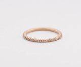 A delicate and petite enternity band set with sparkly white diamonds in 18k rose gold.  These rings are so versitile, they look gorgeous on their own -delicate and feminine, or your perfect stacking ring. It can also compliment an engagement ring. This is one ring that you can not go wrong with!