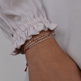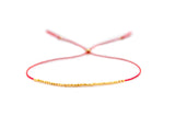 Delicate gold or silver on red silk bracelet with the tiniest of tiny faceted beads gives the illusion of one continues bar of sparkle.