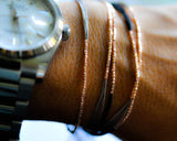 Four strands of silk thread are combined with tiny faceted 24k gold dipped ( over pure silver) beads. The bracelet is adjustable and is held together with a bead and finished with two cute tassel fringes.