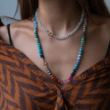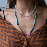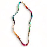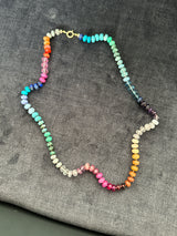 The Rainbow necklace is hand knotted with a beige silk cord and finished off with 14k solid gold clasp.