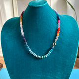 Made with multi gemstones measuring approx 7-8mm in width and 24 inches in length. This is a versitile necklace made to be worn on its own or layered. You can even add your favorite charm to the clasp.