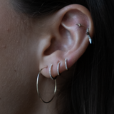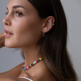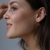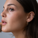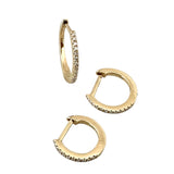 Delicate Diamond studded huggies. Great on their own, stacked or used to hang a charm. We love these versatile Huggies.