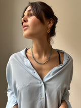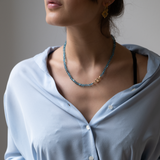 This Apatite gemstone necklace is made with extremely beautiful smooth 5 - 6.5mm beads. The necklace is knotted with a silk cord so it falls nicely on your neck. It is a great layering necklace or looks perfect and elegant on its own.